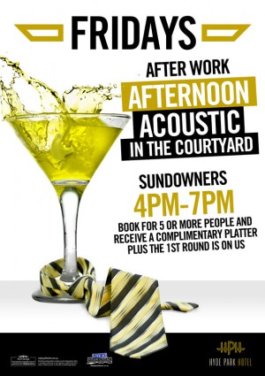 Give us a call to tell us your coming between 3pm and 7pm on Fridays, and receive a free platter of food for you and 4 of your mates and we will also buy the first round.