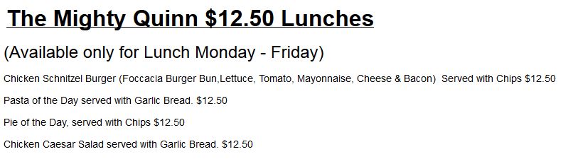 - Chicken Schnitzel Burger - Foccacia burger bun, lettuce, tomato, mayonnaise, cheese & bacon, served with chips.